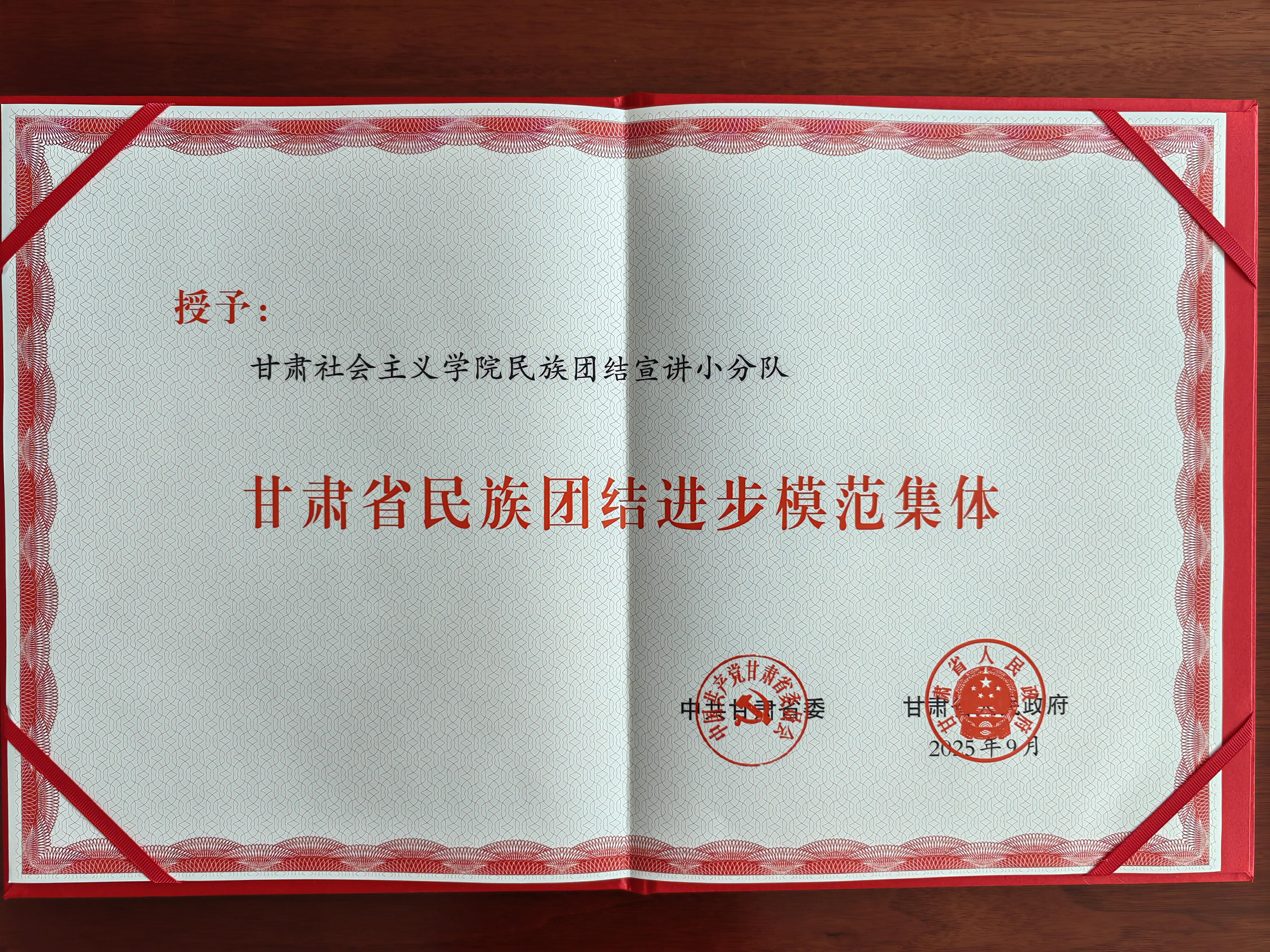 甘肃社会主义学院民族团结宣讲小分队 荣获“甘肃省民族团结进步模范集体”称号